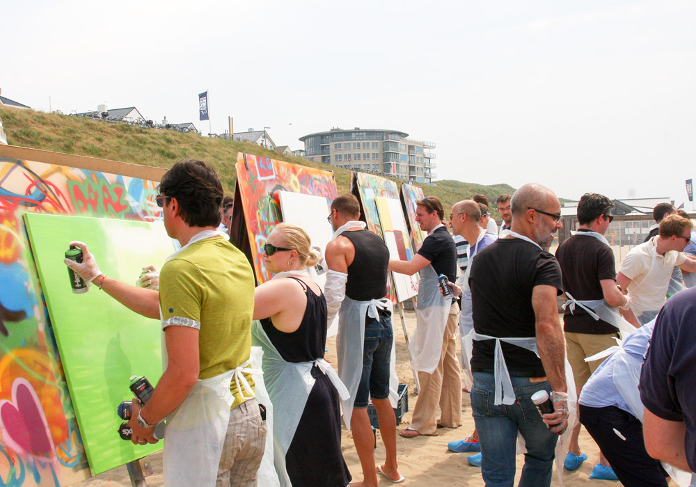 Ons workshop programma is in grote lijnen gericht op het gezamenlijk maken van een kunstwerk op basis van een thema. Dit maakt de workshop graffiti spuiten uitermate geschikt als teambuilding activiteit. Mede daarom wordt deze workshop veelal ingezet als bedrijfsuitje, incentive, afdelingsuitje, vergaderbreak of vrijgezellen workshop.